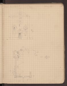 Disegni della facciata, pianta, alzato e interno, con vari particolari della chiesa realizzati il 6 marzo 1878.
