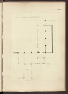 Disegni acquarellati della pianta, prospetto e particolari dei capitelli, realizzati il 7 luglio 1868. Nei disegni dei taccuini, Paravicini appunta «Casa Legnani», segnala le misure di ogni colonna e di vari intercolunni e segnaal «tutte le colonne meno la base erano in calcare nero, con anche i capitelli pensili e le chiavi degli archi, gli archivolti sembra fossero in terra cotta».