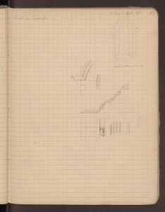 Disegni del monumento funerario di Giovanni Tolentino e del particolare di una finestra della chiesa; quest’ultimo realizzato il 3 agosto 1876.