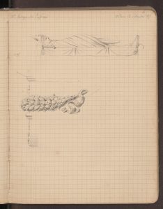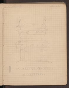 Disegni complessivi e particolari del monumento funebre del vescovo Daniele Birago di Andrea Fusina, realizzati il 4, 5, 15, 19, 27, 28 settembre 1876.