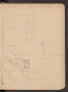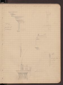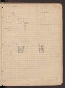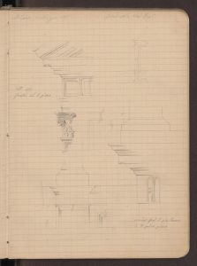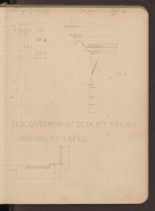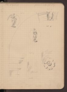 Disegni del portale e di alcuni particolari della facciata (neobramantesca) realizzati il 19 aprile 1871.
