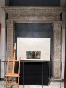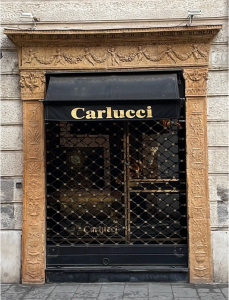 La porta ora conservata al castello sforzesco si trovava al civico 39 di corso Magenta forse originariamente parte del complesso religioso di San Gerolamo dei gesuati. Entrata nella complessa bibliografia del Palazzo Eustachi (creduto erroneamente Medici), il portale divenne evidentemente un modello per la Milano del neo-rinascimento. Del portale furono realizzati calchi probabilmente con lo scopo di usarli in edifici del XIX secolo. Uno di questi è conservato a Brera e l’altro è la vetrina di un antiquario in via del Babuino 50 a Roma, con una curiosa inversione di modelli rispetto al tradizione recupero dell’antico e del rinascimento dell’Urbe.