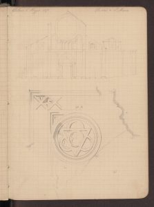 Disegni della chiesa realizzati il 13 aprile 1870, il 6 maggio 1871 e il 27 giugno 1871.