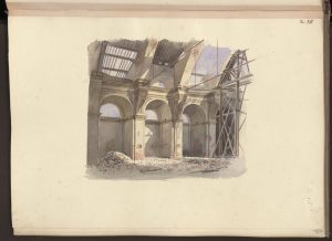 Disegni della chiesa in via demolizione. I disegni sono all’esposizione di Torino (1884, p. 119, n. 263): «Milano: Chiesa nel monastero di Aurona – Portico del convento di S. Spirito – Casa in via Torino n. 10 e 12 – Chiesa del Giardino – Camino ora al Museo Poldi Pezzoli _ Porta della casa via San Romano n. 17 – Portico della Canonica di S. Ambrogio – Casa Rabbia sulla piazza S. Sepolcro – Lazzaretto – Casa lungo il Naviglio di S. Sofia (un album di tavole 40)». Corrisponde probabilmente al volume 31 (BAMi, III.St.E.XIV), già denominato Ducato di Milano, volume 17.