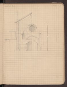 15 Giugno 2021 Edoardo RossettiMilano, Chiesa di Santa Maria della Pace Chiesa di Santa Maria della Pace a Milano Disegni di Paravicini: BAMi, S.P.II.217, quaderno 11, c. 34 (numerazione originale 31r). Disegno della facciata realizzato il 16 ottobre 1876. ©Veneranda Biblioteca Ambrosiana/Mondadori Portfolio
