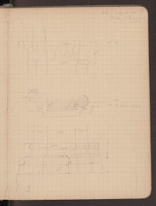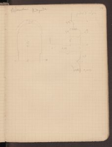I quindici disegni a matita datati «Milano, 3 agosto 1886», che Paravicini dedica al chiostro di Santa Radegonda contengono precise misure – sia delle campate che delle singole parti di capitelli e basi – e per questo costituiscono un prezioso tassello per la storia artistica del cenobio. Gli schizzi sono comunque quanto resta di un progetto incompiuto o non completamente pervenuto alla contemporaneità perché mancano sia gli appunti volanti che dovevano completare i rilievi, che le versioni definitive dei disegni; per questo motivo i riferimenti all’alfa numerazione dei capitelli del chiostro prevista da Paravicini in due fogli (6, 34) non risulta del tutto chiara. Mai presi in considerazione nello studio del complesso ecclesiastico, i disegni completano il materiale grafico noto su Santa Radegonda inserendosi tra la dettagliata mappa firmata da Vincenzo Seregni (Bianconi 1780, VIII, c. 27) e i ben più tardi rilievi del 1924 di una parte già ampiamente alterata del chiostro (Patetta 1987, p. 382). Se l’edificio originale è scomparso molti materiali lapidei in esso presenti sono ora conservati presso le collezioni del Museo d’Arte Antica del Castello Sforzesco. La schedatura più recente di questi materiali e un sunto delle vicende del cenobio si devono a Stella Ferrari (2012, pp. 207-230, schede nn. 209-252) ed Edoardo Rossetti (2013, II, pp. 427-428, schede nn. 819-820). Paravicini è comunque qui interessato alla fase duecentesca del chiostro dedicando a quella quattrocentesca la sola bozza di alzato a c. 7. Le due mappe del chiostro (cc. 6, 34), entrambe orientate con l’ala nord a destra, evidenziano tutta l’asimmetria del complesso, il chiostro era formato da tre lati di porticato del XV secolo che si innestavano su uno precedente. Anche il sistema architettonico del Quattrocento era del tutto irregolare – dato che non si registra dalla pianta di Seregni – e Paravicini registra campate di larghezza variabile dai 5 metri e 91 della luce dell’arco di ingresso verso sud alla media di tre metri per il resto del porticato rinascimentale su colonne (da 2,90 a 3,22), per un’altezza complessiva circa sei metri al marcapiano. Attenzione peculiare è però prestata dal Paravicini al sistema architettonico dell’ala nord, quello più antico, datato dalla critica al XIII secolo forse su preesistenze, comunque in un’epoca in cui si registra il rinnovo del complesso e il pagamento a magistri e lavorerieri a partire dal 1253 (Baroni 2005, pp. 120-125; Ferrari 2012, p. 208). I disegni riguardano infatti prevalentemente le due campate dell’angolo nord-ovest del chiostro, una delle quali fu ricomposta dopo il 1897 nel Museo Patrio Archeologico da poco trasferito al Castello Sforzesco. Un dato che potrebbe mettere in discussione datazione e ricostruzione di questa ala del complesso è l’ultimo schizzo di Paravicini che mostra per queste campate una copertura a tutto sesto e non a sesto acuto come invece nei rilievi del 1924 (c. 58).