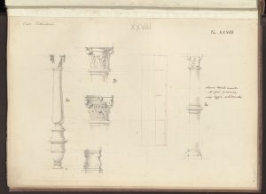 Disegni Paravicini: BAMi, III. St. E. XIV, volume 25, tavole 20-32; S.P.II.217, quaderno 5, cc. 1-11.
